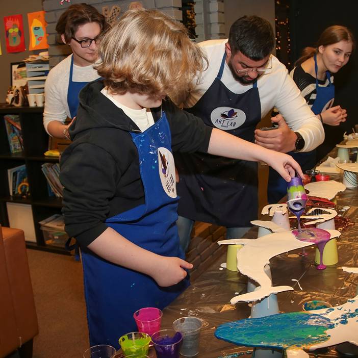 Dette er et lekent maleverksted hvor dere slipper kontrollen og lar malingen flyte. Kurset starter med at Marina og Konstantin ønsker dere velkommen og gir en kort introduksjon til Fluid Art-teknikken. Deretter får dere veiledning i valg av farger og hvordan dere kan kombinere dem for å få det uttrykket dere ønsker. Selve prosessen er intuitiv. Dere heller og flytter malingen, lar den blande seg, og ser på at deres unike mønster tar form. Det kreves ingen forkunnskaper, bare lysten til å skape noe eget.